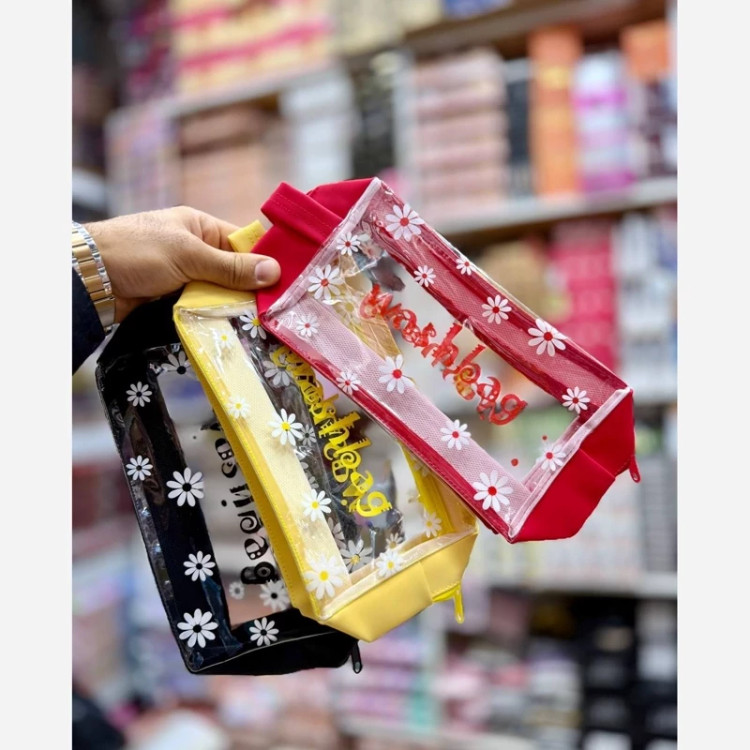 کیف آرایشی سایز بزرگ واش بگ washbag واش بگ طرح بابونه سایز بزرگ 3 رنگ وارداتی کیفیت عااالی