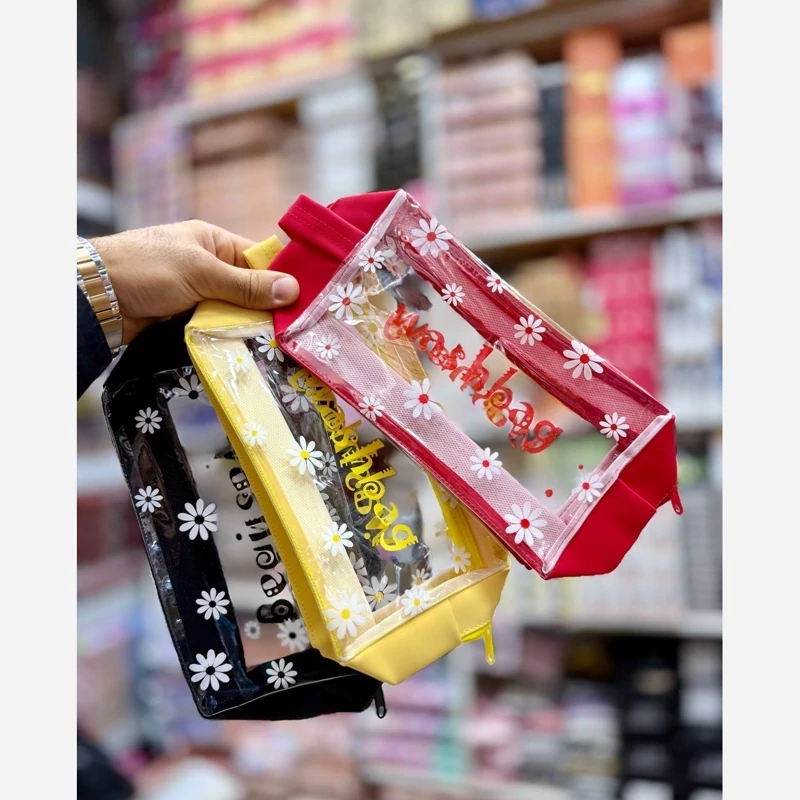 کیف آرایشی سایز بزرگ واش بگ washbag واش بگ طرح بابونه سایز بزرگ 3 رنگ وارداتی کیفیت عااالی