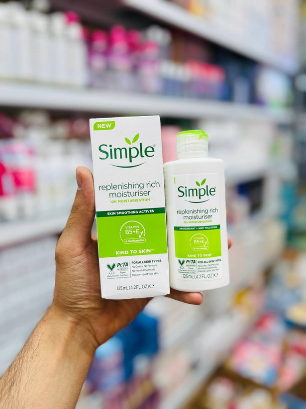 آبرسان همیشه لازمه آبرسان سیمپل simple در دومدل rich و light بافت سبک و زود جذبی داره شاداب کننده و دارای ویتامین B5 و E بدون الکل ، پارابن و مواد شیمیایی بدون تست حیوانی ماندگاری و ابرسانیش بالاس حدود 10 ساعت مدل rich مناسب انواع پوست به خصوص پوست های خشک و حساس مدل light برای انواع پوست و حتی پوست چرب حجم 125 میل استفاده از ابرسان در طول روز دوبار توصیه میشه