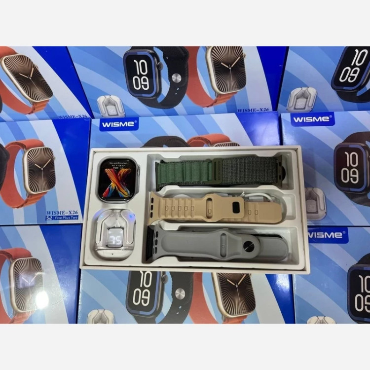 🔴ساعت هوشمند WISME مدل:WISME_X26 ✅قابلیت دریافت پاسخگویی بە مکالمە ✅دارای منوفارسی ✅دارای پنج عدد بند و ایرپاد ✅بسیارشیک و کیفیت عالی